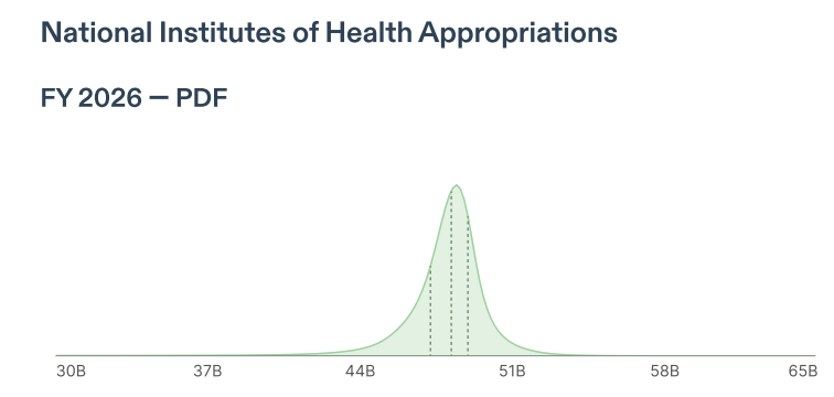 Congress is pushing back on the administration’s proposed science cuts, as the NYT and Science report. The Senate’s bipartisan CJS package largely preserves funding across the board — science budgets at NASA and DOE are stable, and a proposed 55% cut to NSF ended up closer to 3%. Earlier this week, Congress also released a compromise LHHS bill that would raise NIH’s budget slightly, rejecting a proposed 40% cut. These numbers track with a Metaculus report we commissioned back in September, in which pro forecasters predicted relatively steady funding for NIH and NSF despite the turmoil; the proposed NIH and NSF budgets are both just shy of forecasters’ 75th percentile predictions for FY26. — Jordan Dworkin